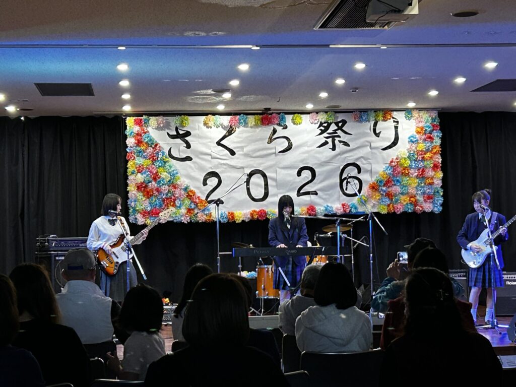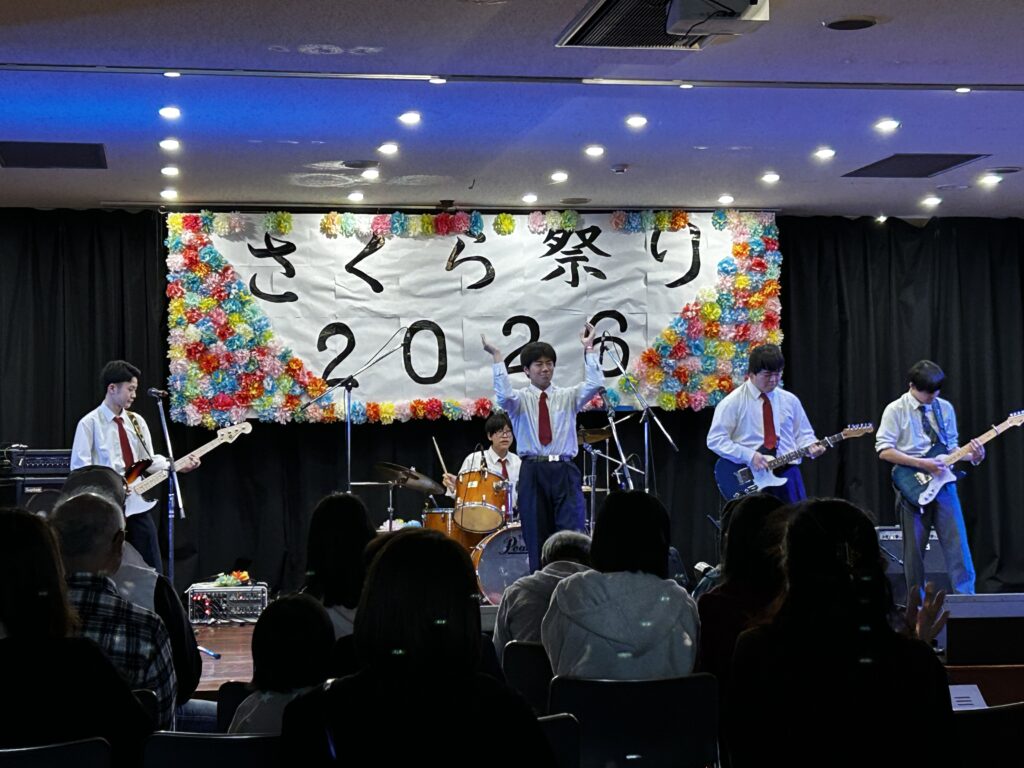 【軽音楽部】さくら祭り2026出場2026年4月13日 4月12日(日)に足利鹿島園温泉、会場アバンテで「さくら祭り」のステージイベントがおこなわれ、社会人らとともに、バンド演奏をおこないました。今回5バンドが参加し、10曲を披露しました。どのグループもよい演奏ができ、楽しい思い出になりました。これからの活動にも、熱が入ると思います。今回も、多くの方に応援に来ていただき、あたたかい声援をいただき感謝しています。 Shooting さうんど SuGar Moon 手羽先革命 タグ:軽音楽部